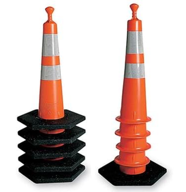 42″ tall durable grabber cone made of flexible LDPE and UV inhibitors to minimize fading. Recessed areas protect reflective bands. Rubber bases available.