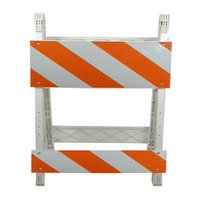 A Type II barricade designed for strength & rigidity. It’s built from component parts assuring easy replacement when damage occurs. All plastic ensures no rusting, with little maintenance required. Features 2 light receptacles.