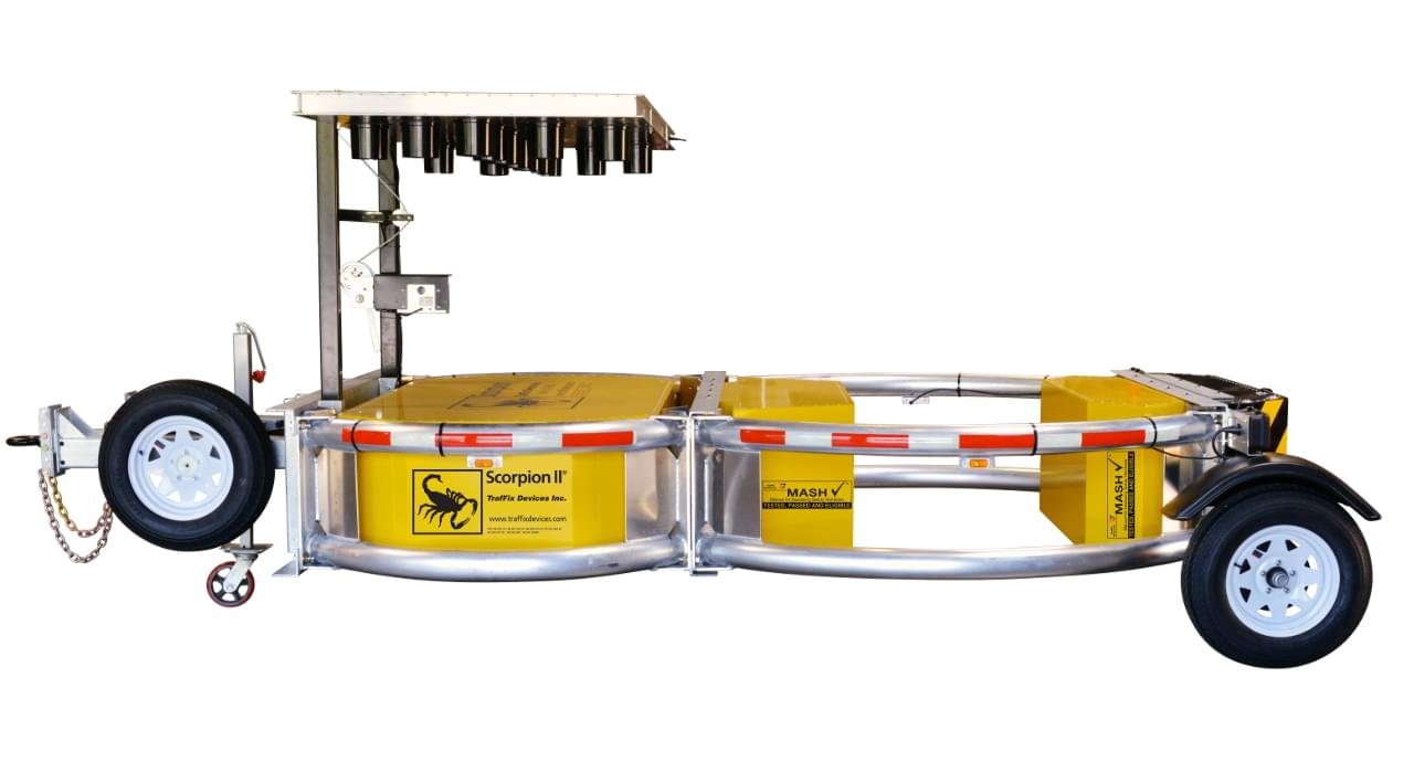 This towable TMA is MASH TL-3 Eligible with a minimum host truck vehicle weight of 12,000 lbs (5,433 kg) with no upper weight limit. Also available in a towable model.