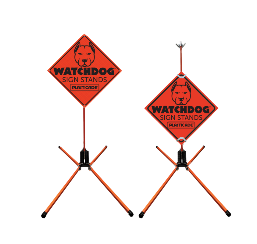 The SS440 is a mid-size double spring stand made of steel, which holds rigid and roll-up signs 36” & 48”. The automotive grade steel, double spring is designed to perform in extreme weather conditions and E-coated for maximum rust and corrosion resistance. Multiple features, including: orange powder coated steel legs and mast, telescoping mast with fixed length legs which lock in multiple positions to adjust to uneven ground, non-skid rubber feet, and a built-in three flag holder. It’s small footprint enables more stands per truck.