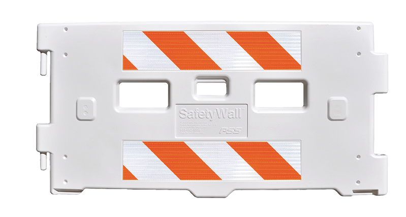 SafetyWall® ADA-Compliant Pedestrian Barricade is ideal for creating accessible work zones. A continuous, interlocking device, SafetyWall meets ADA guidelines and MUTCD standards as a sidewalk closure or a longitudinal channelizer. It’s also tested to Manual for Assessing Safety Hardware (MASH) Guidelines, Test Level 3. Available in orange or white.