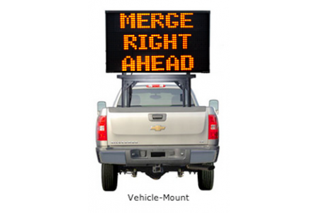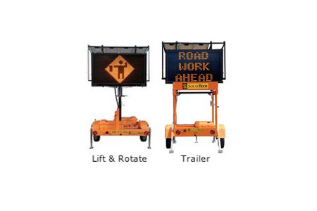 The “Silent Messenger III” mid-sized message board is a truly reliable workhorse. A 27 x 48 pixel full matrix LED display on a sturdy steel trailer is powered by both solar panels and batteries. Display area measures 78” wide by 46” high, giving a clean crisp readable message. Available in either a foldable or a Lift and Rotate trailer.